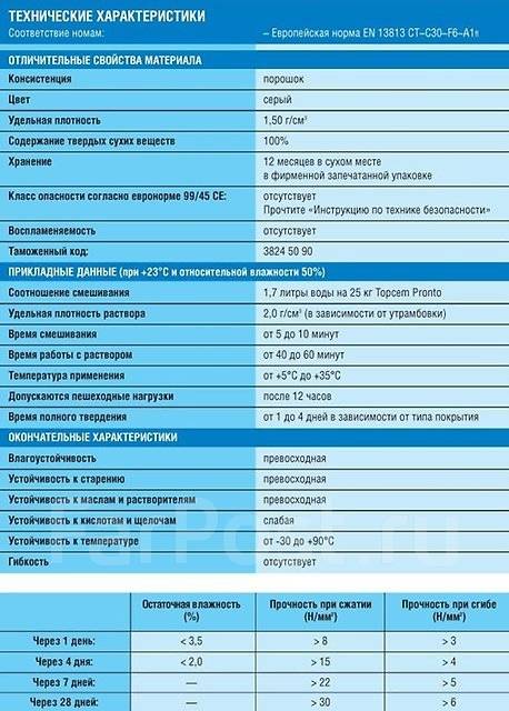 - Плотность смеси, готовой к применению 2, 10 ± 0, 1 кг/дм3.
